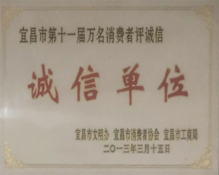 宜昌市第十一屆萬(wàn)名消費(fèi)者評(píng)誠(chéng)信-誠(chéng)信單位