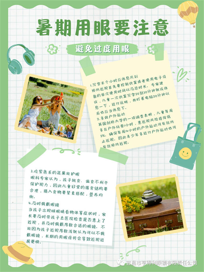 父母是孩子的第一任老師,孩子的行為往往是成人世界的反映,身教重于言教,受其熏陶。也有不少孩子宅在家里沒人管,出現(xiàn)長時間看書看電視、看手機、玩游戲等無節(jié)制用眼的情況,再加上作息時間不規(guī)律、飲食不規(guī)律等不良生活習慣的養(yǎng)成,每逢假期結束,都會容易出現(xiàn)孩子視力普遍降低的情況。所以要督促孩子養(yǎng)成良好的用眼習慣!