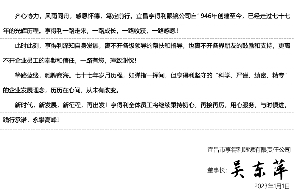 公司全體員工秉承傳統(tǒng),再接再勵,為百姓視力健康,為“光明工程”為中國眼鏡事業(yè)作出貢獻。